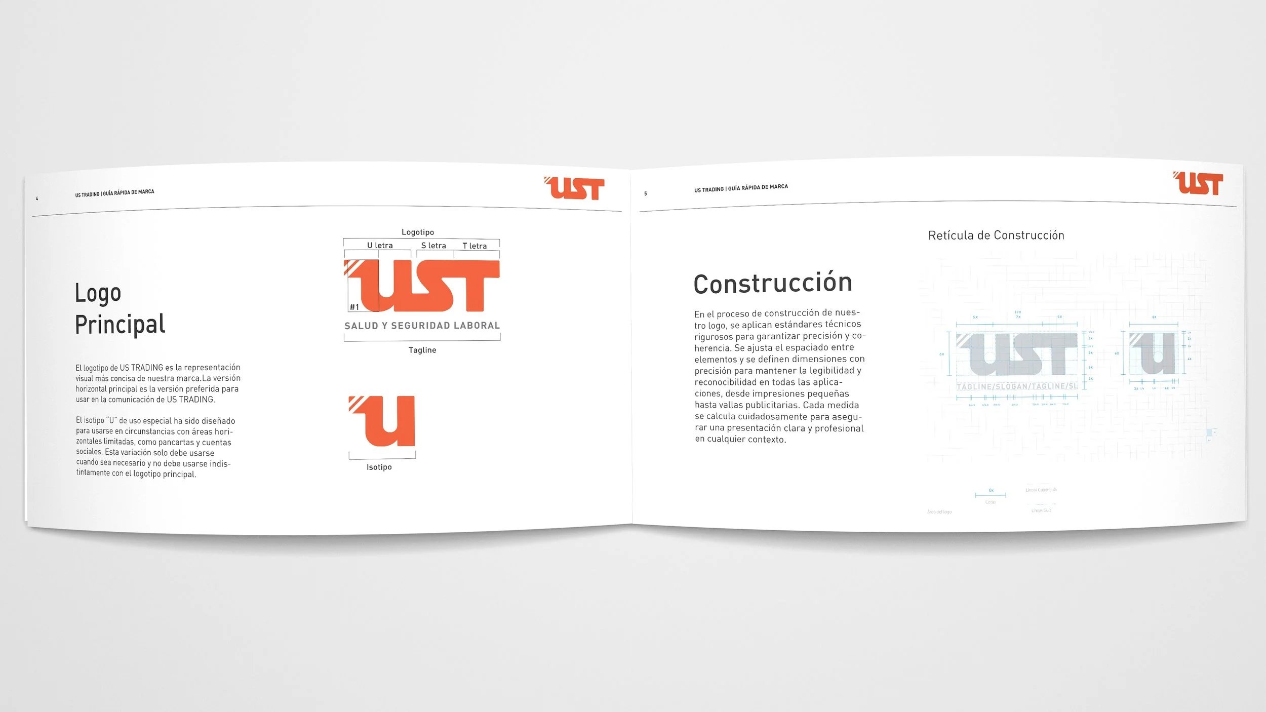 I carefully separated the letter “U” to serve as a versatile submark, enhancing the logo’s adaptability across applications. I guided UST Trading in selecting a modern, functional sans serif typeface, FF DIN, to ensure cohesion across all visual communications. I crafted detailed brand identity guidelines to maintain consistency in every interaction. To refine the logo, I applied precise kerning techniques, adjusting the spacing between each letter to improve readability and achieve a balanced visual weight. I also designed a color palette combining three shades of gray with a vibrant orange and a carefully chosen blue accent, creating a modern, dynamic, and versatile visual language.Result